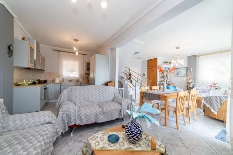 Напълно обзаведена тази невероятна къща ви предлага възможност за целогодишно обитание, поради налични както охладителни, така и отоплителни системи в нея.